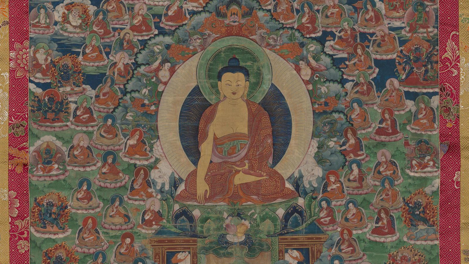 Top image: The Buddha Shakyamuni with Lamas, 1700-1800. Tibet. Colors on cotton. Asian Art Museum, The Avery Brundage Collection, B60D23+. Photograph © Asian Art Museum of San Francisco.